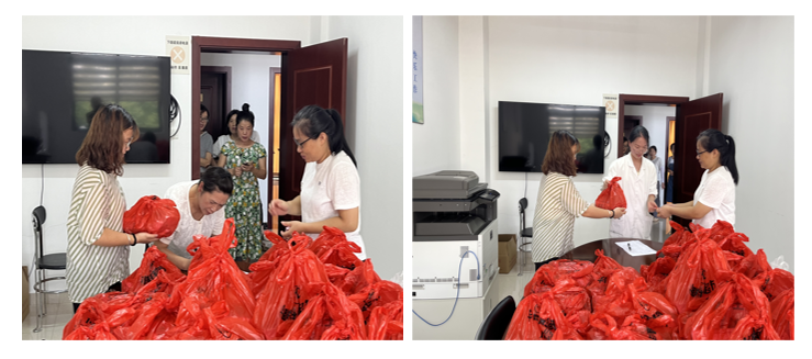 发放现场,节日氛围格外浓厚。一袋袋满载祝福的礼品堆叠整齐,财务部的同事热情地将这份喜悦传递到每一位家人手中。大家接过礼品,脸上洋溢着幸福的笑容,充满了欢声笑语。这一刻,手中的礼物不仅是一份关怀,更连接着“小家”的团圆与“大家”的繁荣。