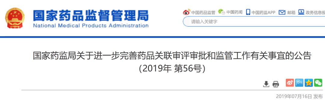 7月16日,国家药监局发布《关于进一步完善药品关联审评审批和监管工作有关事宜的公告》(2019年第56号,以下简称《公告》),该《公告》对原料药、药用辅料、直接接触药品的包装材料和容器(以下简称原辅包)与药品制剂关联审评审批和监管有关事宜予以了进一步明确。《公告》自2019年8月15日起实施,《关于发布药包材药用辅料申报资料要求(试行)的通告》(2016年第155号)同时废止。